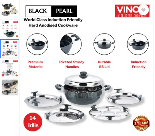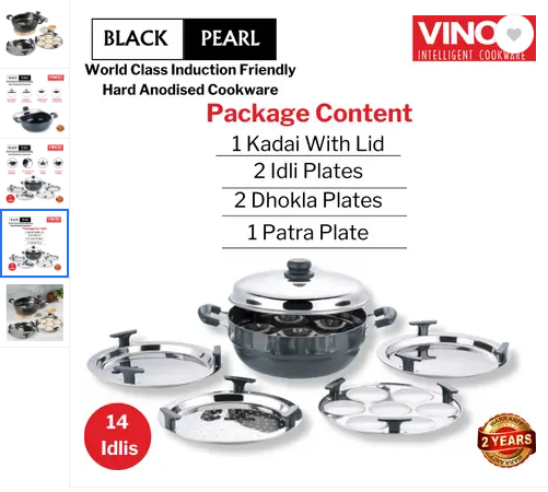 VINOD BLACK PEARL PLUS INDUCTION FRIENDLY MULTI KADAI 6 PCS (WITH SS LID)