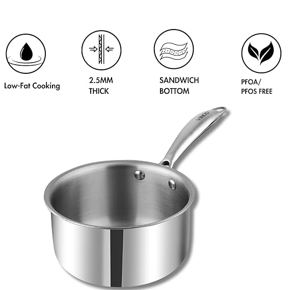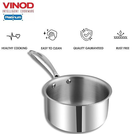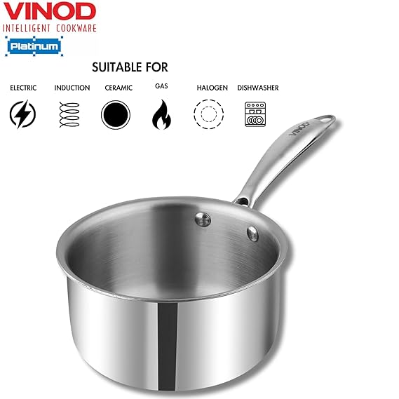 VINOD PLATINUM SAS METAL MILK PAN (WITH SS LID) 1.2 LTR (14 CM)