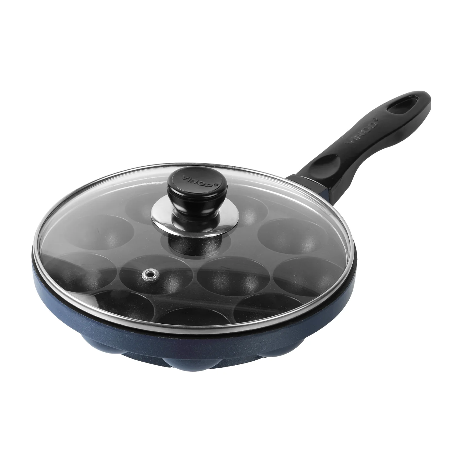 VINOD ZEST NON-STICK PANIYARAKKAL (WITH SS & GLASS LID) 20.5 CM (12 PITS)
